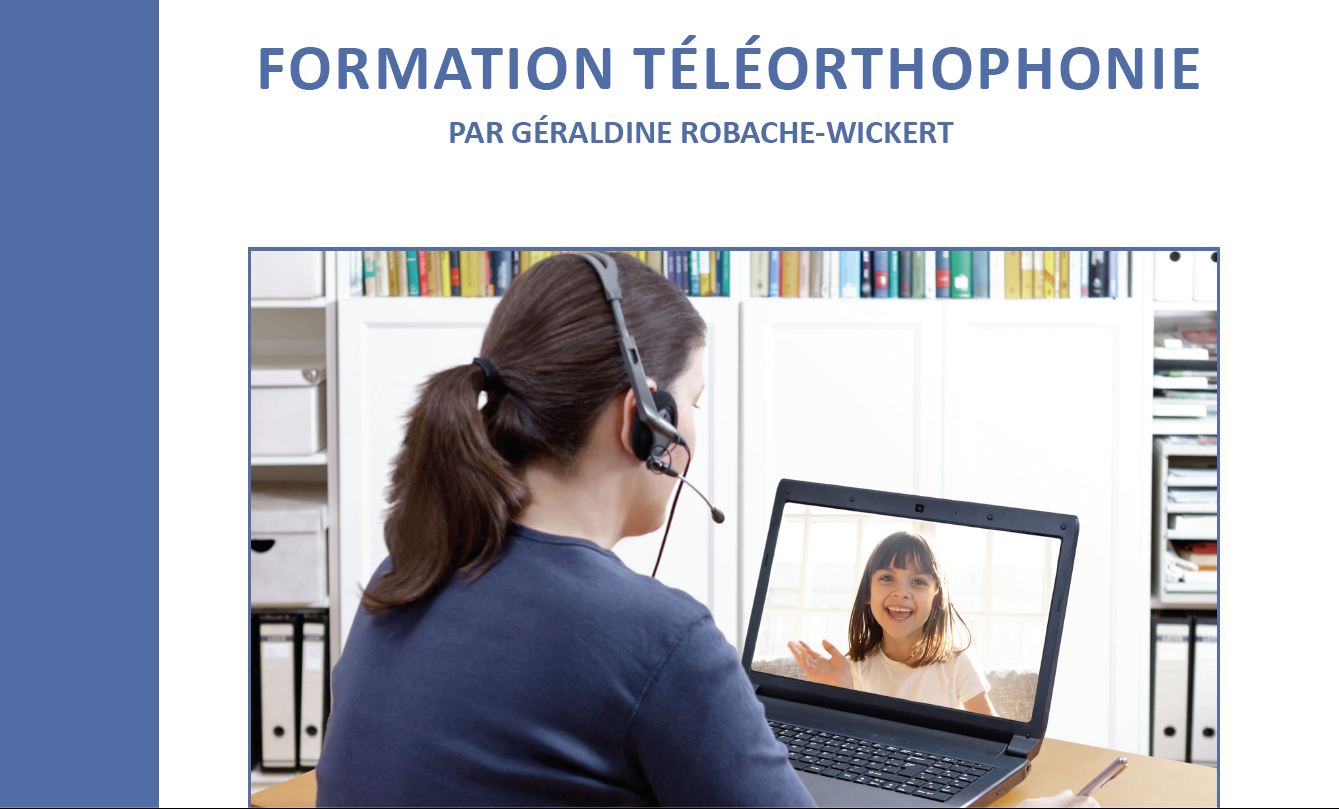 Proposée par Géraldine Robache-Wickert, qui partage 17 ans de téléorthophonie et plus de 30 ans d'expérience. Formatrice choisie par la FNO en France, l'UPLF en Belgique, la SAC-OAC au Canada.